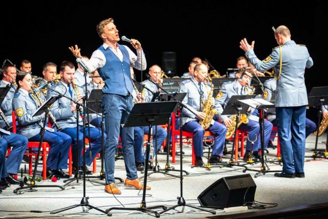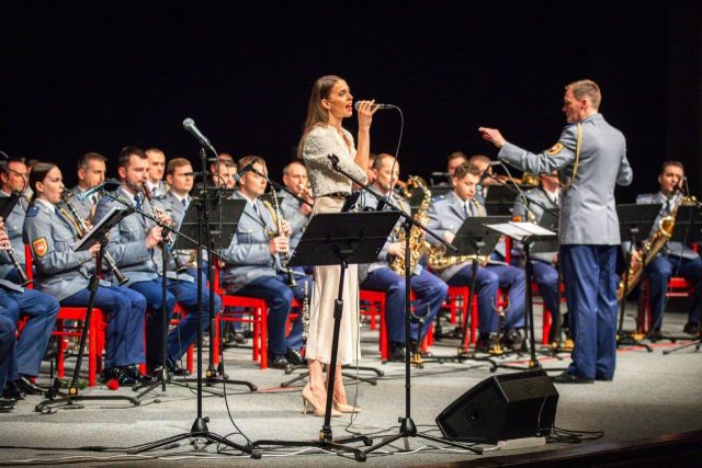 V mene veliteľa posádky a zároveň veliteľa pozemných síl generálmajora Martina Stoklasu privítal na koncerte náčelník štábu Veliteľstva PS plukovník gšt. Vladimír Minárik. 32 členov Vojenskej hudby Banská Bystrica, spoločne so sólistkou Dominikou Richterovou a tajným hosťom spevákom a hercom Jurajom Bačom pripravili pestrý repertoár filmových a muzikálových melódií.