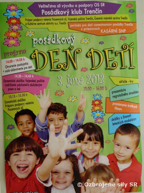 Deň detí bol usporiadaný pre deti zamestnancov posádky Trenčín. Pre deti boli pripravené dynamické ukážky z práce príslušníkov práporu podpory velenia PS a príslušníkov vojenskej polície. Deti mali možnosť poobzerať si vojenskú techniku, ktorou prápor podpory velenia PS disponuje aj z vnútra. Svoje modely tu prezentovali aj leteckí modelári, ďalej boli pripravené rôzne hry, súťaže a občerstvenie.