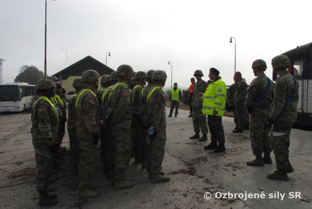 Medzi prichádzajúcimi sú aj príslušníci prieskumného pluku americkej armády v Európe. S našim fotoaparátom sme ich zastihli pri vykládke železničného transportu na železničnej stanici Pliešovce-Sása.