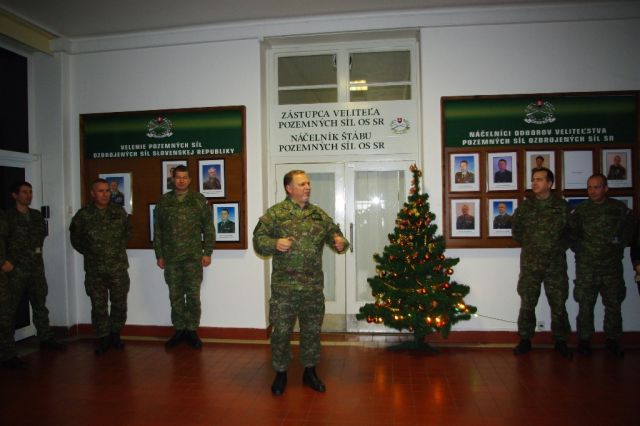 Záver predvianočného dňa patril spoločnému stretnutiu veliteľa a príslušníkov Veliteľstva pozemných síl OS SR pri vianočnej jedličke, kde po veliteľovi pozemných síl svoje duchovné slovo predniesli dekani veliteľstva podplukovník Juraj Sitáš a nadporučík Ondrej Rišiaň.
