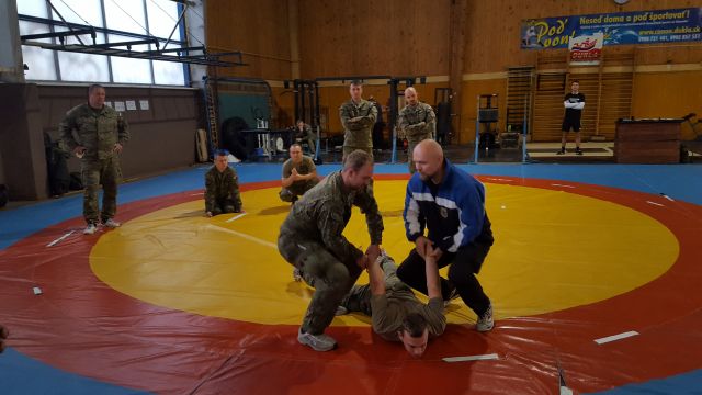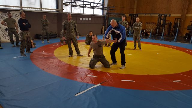 Účelom tohto školenia je precvičiť techniku boja zblízka, spútanie podozrivého či zasahovanie viac člennej jednotky v prípade zmiešaných hliadok Policajného zboru v spolupráci s profesionálnymi vojakmi. Výcvik absolvujeme dva krát ročne, čomu sa tešia naši PrV, ktorí sa naučia vždy niečo nové.