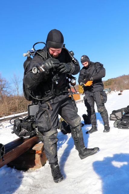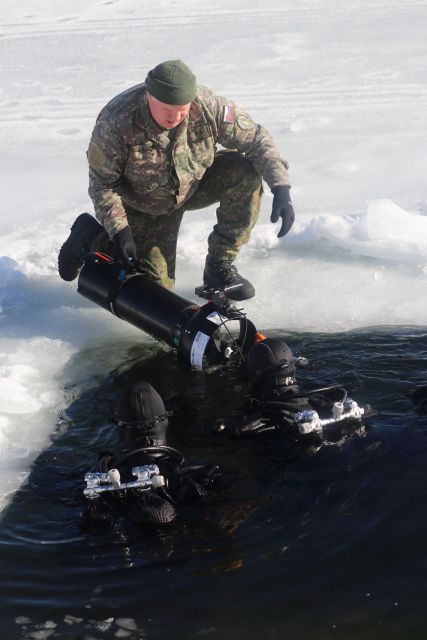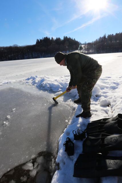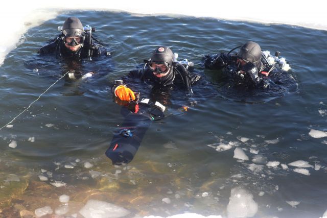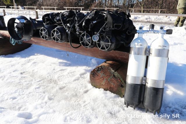 Vojenskí potápači aj v náročných zimných podmienkach získali ďalšie potrebné praktické skúsenosti v priebehu zamestnaní vedených skúsenými inštruktormi Centra výcviku Lešť.