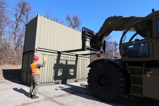 V priestoroch 53. práporu poľných služieb Hlohovec sa v druhej polovici marca uskutočnil ďalší kurz na ovládanie teleskopického nakladača Magni HTH 35.12-V/A-N. Spomínaná moderná logistická technika bola začiatkom roka zavedená do OS SR a nedávno sa vo veľmi dobrom svetle ukázala na spoločnom Americko – Slovenskom cvičení Saber Strike 22. Kurz viedli skúsení inštruktori z martinskej základne výcviku a mobilizačného doplňovania (ZaVaMD) rotmajster František Vydra a nadrotmajster Pavol Ondrušek. Rovnako ako predchádzajúci kurz aj tento je určený predovšetkým pre útvary trenčianskej brigády bojového zabezpečenia, v tomto prípade pre 53. prápor poľných služieb Hlohovec a 20. prápor logistiky Prešov. Zástupca veliteľa brigády plukovník Maroš Murárik konštatoval, že nové teleskopické nakladače, ktoré dostali sú začiatkom nástupu novej techniky pre jej útvary. „Som veľmi rád, že na cvičení Saber Strike 22 sa táto technika a jej obsluha, ktorá len tesne pred tým absolvovala kurz veľmi osvedčila a vyslúžila si ocenenie aj od americkej strany. Postupne v kurzoch cvičíme ďalšie obsluhy, lebo práve spomínaná nová technika bude veľmi potrebná pri zabezpečení zahraničných jednotiek v rámci Predsunutej prítomnosti NATO na Slovensku.“