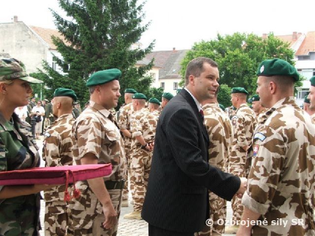 V pondelok 18. júna 2007 Námestie slobody v Novom meste nad Váhom patrilo príslušníkom Ozbrojených síl Slovenskej republiky v púštnom odeve so zelenými a modrými baretami na hlavách. Podľa týchto znakov možno totiž rozpoznať príslušníka pôsobiaceho v zahraničných misiách OS SR, do ktorých sa naša republika zapája ako aktívny člen medzinárodných zoskupení (OSN, NATO, EÚ). Tí so zelenými baretami prišli z operácie ISAF v Afganistane, kde naši vojaci pôsobia od júna 2004 a konkrétne táto rotácia realizovala na základe požiadavky NATO a súhlasného stanoviska vlády SR presun z Kábulu do juhoafganského Kandaháru. "Modré barety" plnili úlohy pod vlajkou OSN v operácii UNDOF na Golanských výšinách, kde slovenskí vojaci pôsobia od mája 1998. Sú začlenení v prápore AUSBAT susednej rakúskej armády. V tejto rotácii pôsobilo aj šesť žien, ktoré okrem medailí z rúk ministra obrany SR Františka Kašického, prevzali aj symbolickú kytičku na znak vďaky za ich službu vo vzdialenej Sýrii. Spolu s ministrom obrany ocenil 51 príslušníkov jednotky ISAF a 46 príslušníkov jednotky UNDOF medailami za službu v mierových a pozorovateľských misiách I. a II. stupňa osobne aj náčelník Generálneho štábu OS SR generál Ľubomír Bulík. Text : kpt. Ján TurčanFoto: npor. Jaroslav Lacko