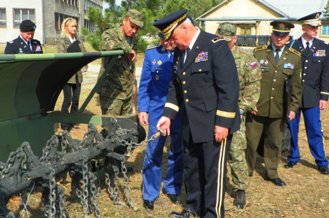 Na začiatku návštevy náčelník štábu žpr PS major Slavomír Čmarada v krátkej prezentácii predstavil ženijný prápor a jeho hlavné úlohy. Neskôr si delegácia prezrela dynamickú ukážku odmínovacieho kompletu Božena, počas ktorej bol podrobne vysvetlený princíp mechanického odmínovania. Po skončení statickej ukážky ženijnej techniky, generálmajor Umbarger v krátkom príhovore zdôraznil dôležitosť práce ženijných jednotiek. Ďalším bodom programu bola návšteva siene tradícií, kde sa generálmajor Umbarger našiel na jednej z fotografií z roku 1994, keď prvýkrát navštívil SR a vtedajšiu ženijnú brigádu dislokovanú v meste Sereď.