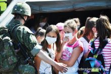 Po prijatí správy o vzniku závažnej udalosti, bola prijatá ďalšia správa, v ktorej krízový štáb mesta Levice nariadil evakuáciu obce Kozárovce. Z 13. mechanizovaného práporu okamžite vyrazili dve autá s vyčlenenými profesionálnymi vojakmi, ktorých úlohou bolo vykonať evakuáciu žiakov a školský personál ZŠ Kozárovce. Zo školy v Kozárovciach boli deti a učitelia následne prevezení do kontrolného stanovištia v obci Žemberovce, z dôvodu vykonania registrácie evakuovaných osôb a ich dozimetrickej kontroly. V prípade zasiahnutých osôb sa vykonávala dekontaminácia osôb a techniky  v zabezpečení práporu rchbo z Rožňavy pomocou dekontaminačných liniek. Po dekontaminácii pokračoval prevoz detí do obce Pukanec, kde bolo pre deti a učiteľský personál zabezpečené núdzové ubytovanie.