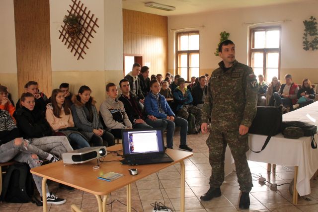 Vojaci  a stredoškoláci  Dňa 26. apríla 2017 profesionálni vojaci práporu CSS v spolupráci s príslušníkmi Vojenskej polície Prešov vykonali v priestoroch práporu CSS pre študentov prvého a druhého ročníka Strednej priemyselnej školy stavebnej Plzenská, stretnutie vojakov a stredoškolákov. V úvode aktivity všetkých prítomných privítal veliaci poddôstojník práporu CSS štábny nadrotmajster Ľubomír Mihalik. Po privítaní nasledovala prezentácia Vojenskej polície o histórii, poslaní a činnosti jednotlivých zložiek Vojenskej polície, ktorú vykonal kapitán Milan Pomfy. V rámci prezentácie si študenti pozreli krátky film z výcviku príslušníkov Vojenskej polície. V ďalšej časti aktivity vykonali kynológovia Vojenskej polície so svojimi služobnými psami dynamické ukážky vyhľadania výbušnín a zaistenie podozrivej osoby. Po vykonaní dynamických ukážok sa študenti oboznámili s výzbrojou a výstrojom Vojenskej polície, počas ktorej si mohli prakticky vyskúšať nasadenie nepriestrelnej vesty a súpravy na potláčanie davu. Príslušníci práporu CSS vykonali ukážky ručných zbraní – samopal vz. 58V, novozavedenú pištoľ ČZ P-09 a univerzálny guľomet vz. 59, kde si prakticky študenti vyskúšali rozobratie a zloženie guľometu. Pre študentov boli pripravené ukážky výstroja vojaka, kde sa študenti mohli oboznámiť s nosným modulárnym systémom a vyskúšať si ho aj s kevlarovou prilbou. Počas ukážok z oblasti radiačnej, chemickej a biologickej ochrany sa študenti oboznámili s prístrojmi na vyhodnocovanie chemickej a radiačnej situácie a prostriedkami individuálnej ochrany jednotlivca. Na pracovisku zo spojovacej prípravy boli pripravené ukážky spojovacích prostriedkov, kde mali možnosť vyskúšať si nadviazanie spojenia. Na pracovisku sebaobrany inštruktori boja zblízka so študentmi prakticky precvičili vybrané chmaty, hmaty a techniky sebaobrany. Záver aktivity vo svojich krátkych príhovoroch vyhodnotili kapitán Mgr. Milan Pomfy a štábny nadrotmajster Ľubomír Mihalik, ktorí sa študentom poďakovali za pozornosť a disciplinovanosť počas priebehu aktivity a s prianím všetkého dobrého sa so študentmi a pedagógmi rozlúčili.