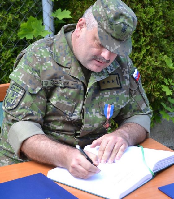 Spoločný nástup bol ukončený zápisom do kroniky útvaru odchádzajúcim podplukovníkom Štefanom Andrášom a jubilantom rotmajstrom Romanom Kocmánkom.